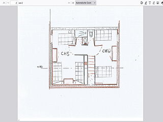 - 1x 3-4er-Zimmer mit 4 Einzelbetten, teils keine Stehhöhe (Nr. 9)