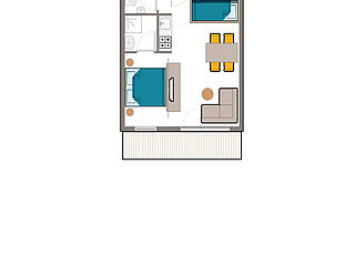 Gesamtkapazität: 29 Betten im Apparthotel in fünf 4-8er-Komfortwohnungen